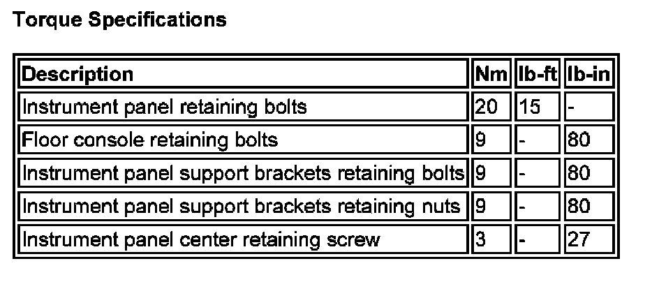 Torque Specifications:
