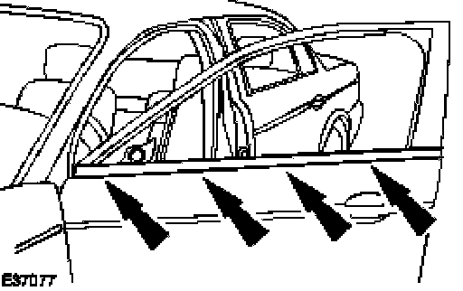 - Lubricate the underside of the front door window glass exterior weatherstrip to aid removal.