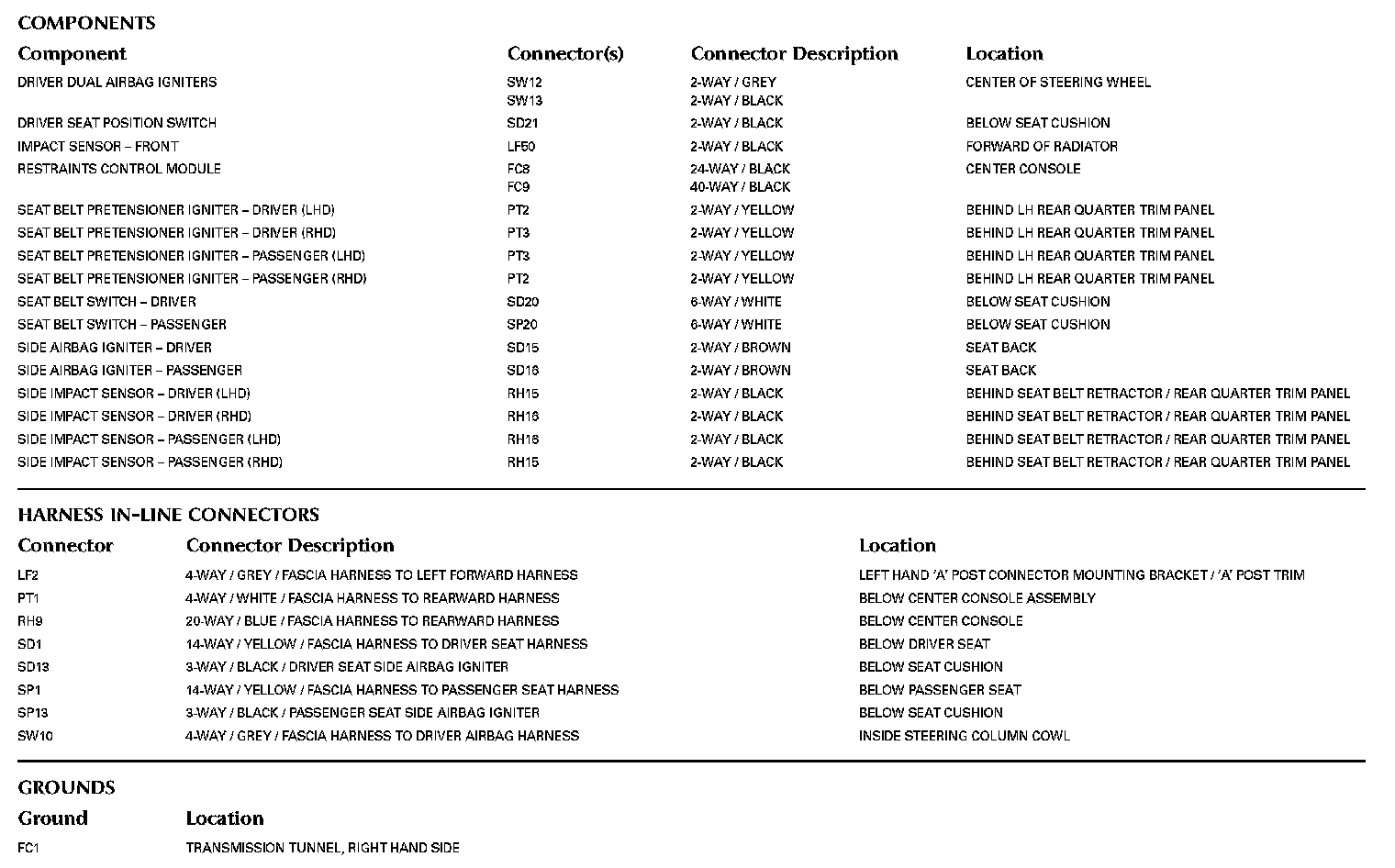 Locations: The location views for Ground Points, In-Line Harness Connectors, Harnesses, and Control Modules depicted within these diagrams can be found at Vehicle/Locations. Locations
