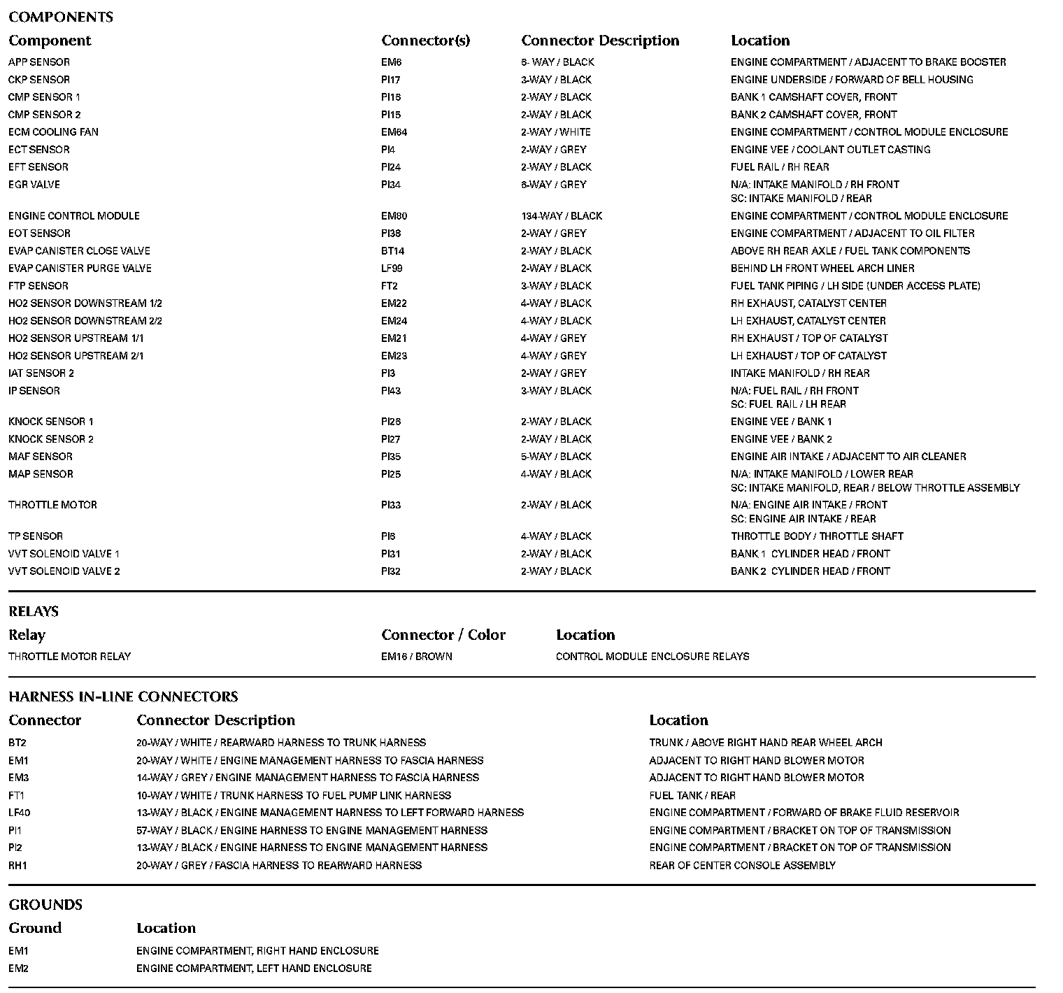 Locations: The location views for Ground Points, In-Line Harness Connectors, Harnesses, and Control Modules depicted within these diagrams can be found at Vehicle/Locations. Locations