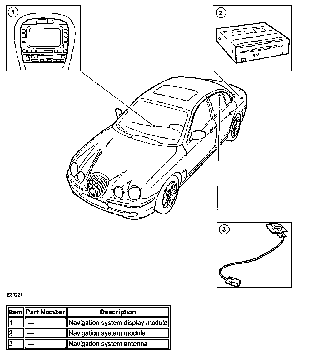 The navigation head unit comprises of a 7 inch full color screen which also provides control of the phone, audio system, climate control, vehicle emergency messaging system (VEMS), voice control, and TV. The navigation module is situated in the luggage compartment on the left-hand side and is covered by a protective trim panel. The Global Positioning System (GPS) antenna is located beneath the parcel shelf trim.