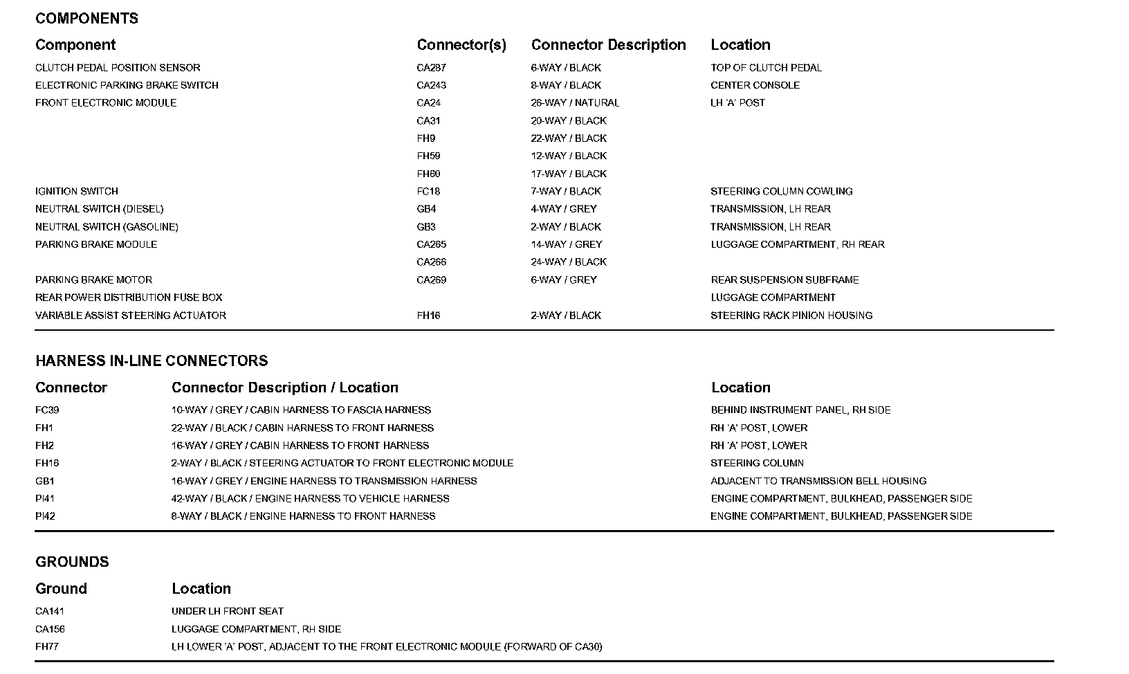 Locations: The location views for Ground Points, In-Line Harness Connectors, Harnesses, and Control Modules depicted within these diagrams can be found at Vehicle/Locations. Locations