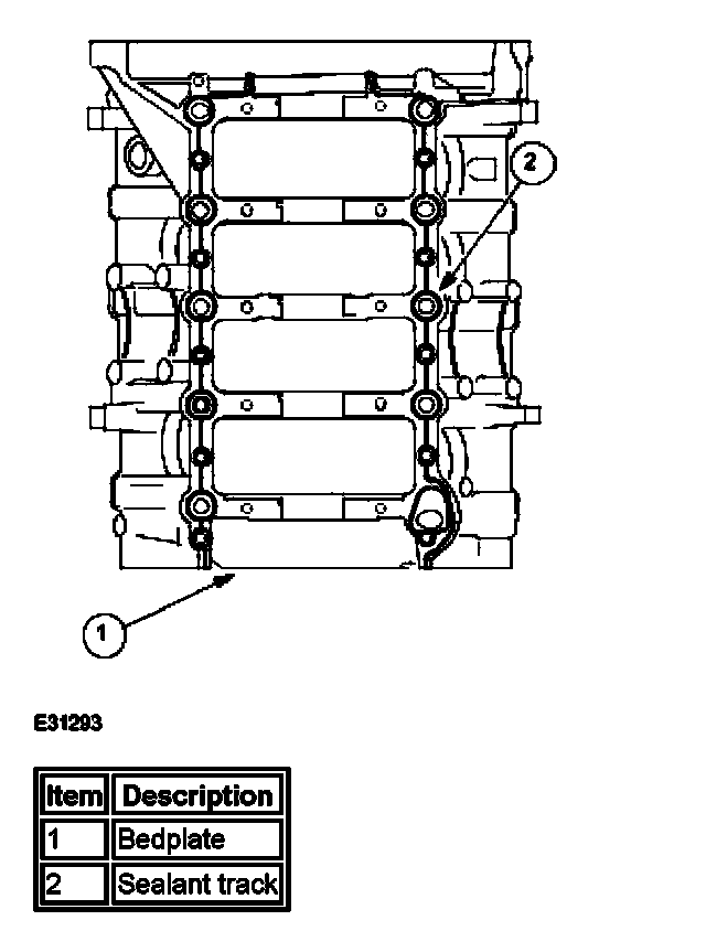 Two hollow dowels align the bedplate with the cylinder block and the joint is sealed by a continuous bead of sealant.