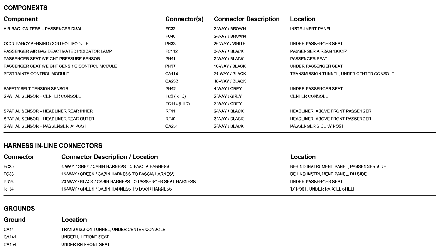 Locations: The location views for Ground Points, In-Line Harness Connectors, Harnesses, and Control Modules depicted within these diagrams can be found at Vehicle/Locations. Locations