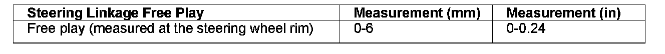 Free play (measured at the steering wheel rim) 0-60 mm (0-0.24 inch)