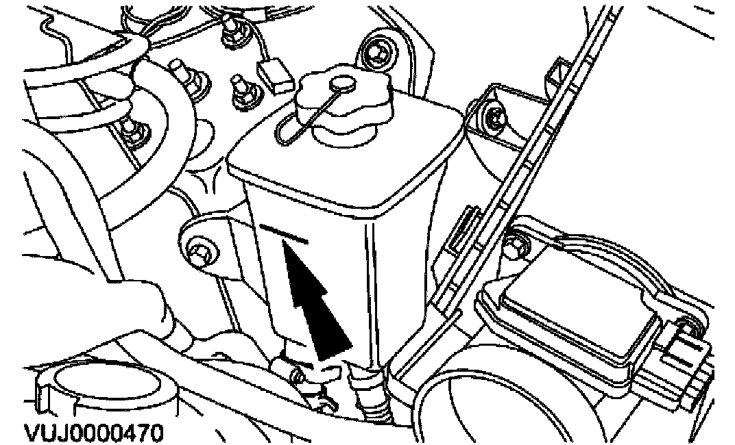 3. Check the fluid level. Fill the reservoir to the MAX mark if necessary.