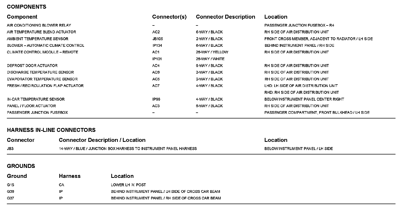 Locations: The location views for Ground Points, In-Line Harness Connectors, Harnesses, and Control Modules depicted within these diagrams can be found at Vehicle/Locations. Locations