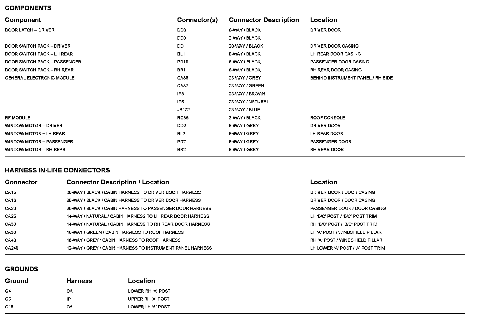 Locations: The location views for Ground Points, In-Line Harness Connectors, Harnesses, and Control Modules depicted within these diagrams can be found at Vehicle/Locations. Locations