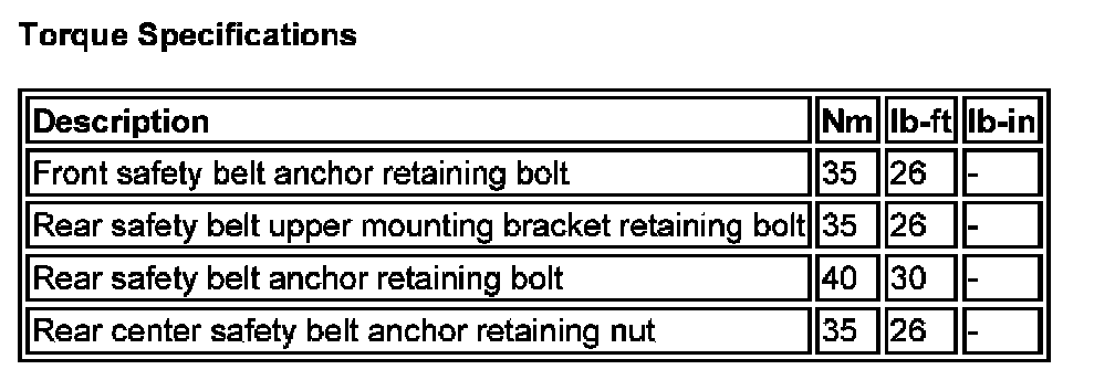 Torque Specifications: