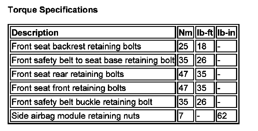 Torque Specifications: