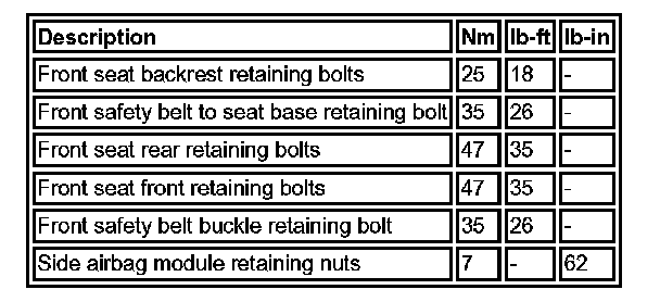 Seats: Specifications