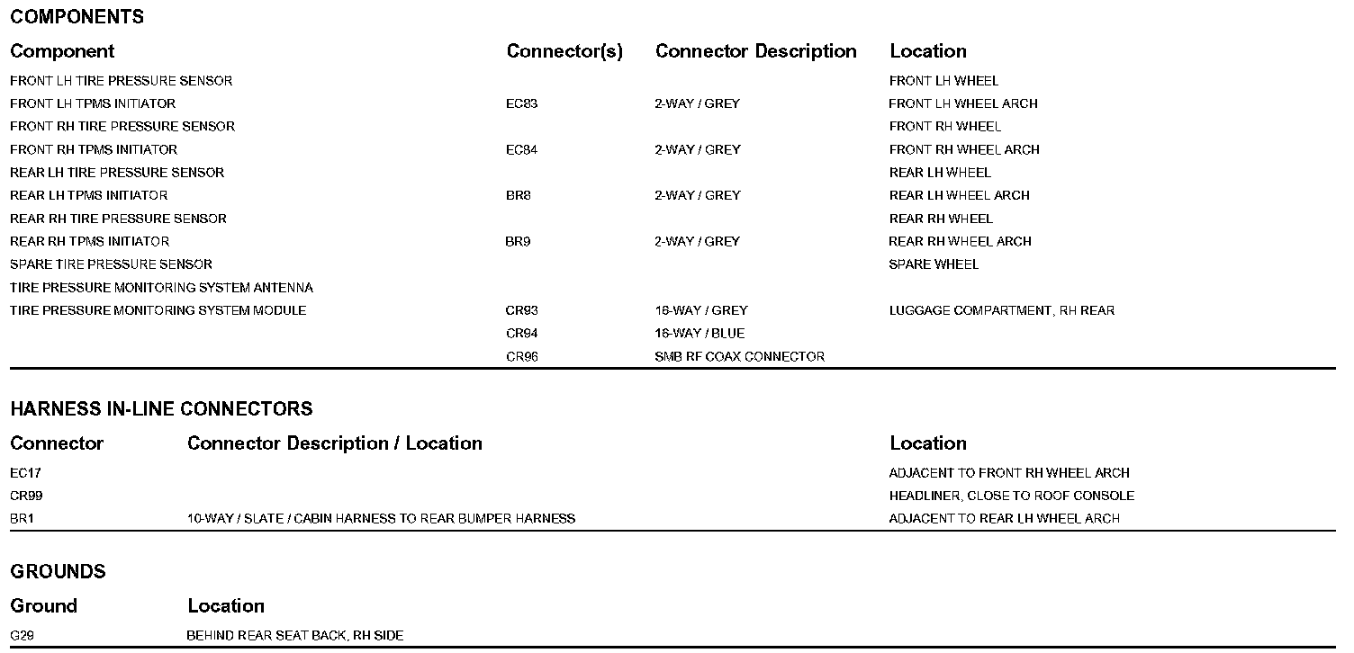 Locations: The location views for Ground Points, In-Line Harness Connectors, Harnesses, and Control Modules depicted within these diagrams can be found at Vehicle/Locations. Locations