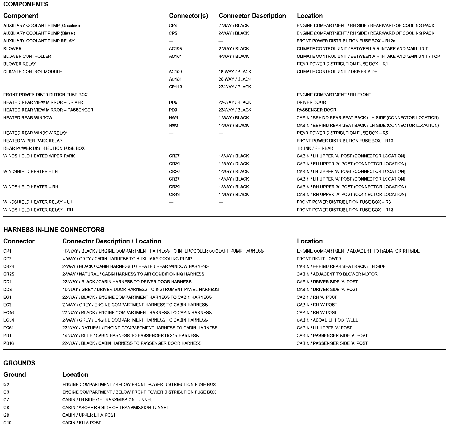 Locations: The location views for Ground Points, In-Line Harness Connectors, Harnesses, and Control Modules depicted within these diagrams can be found at Vehicle/Locations. Locations