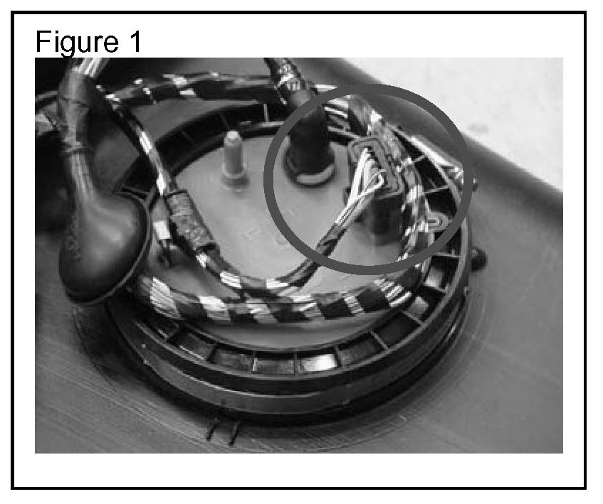 3. Disconnect the fuel tank harness electrical connector from the fuel pump. (Figure. 1)