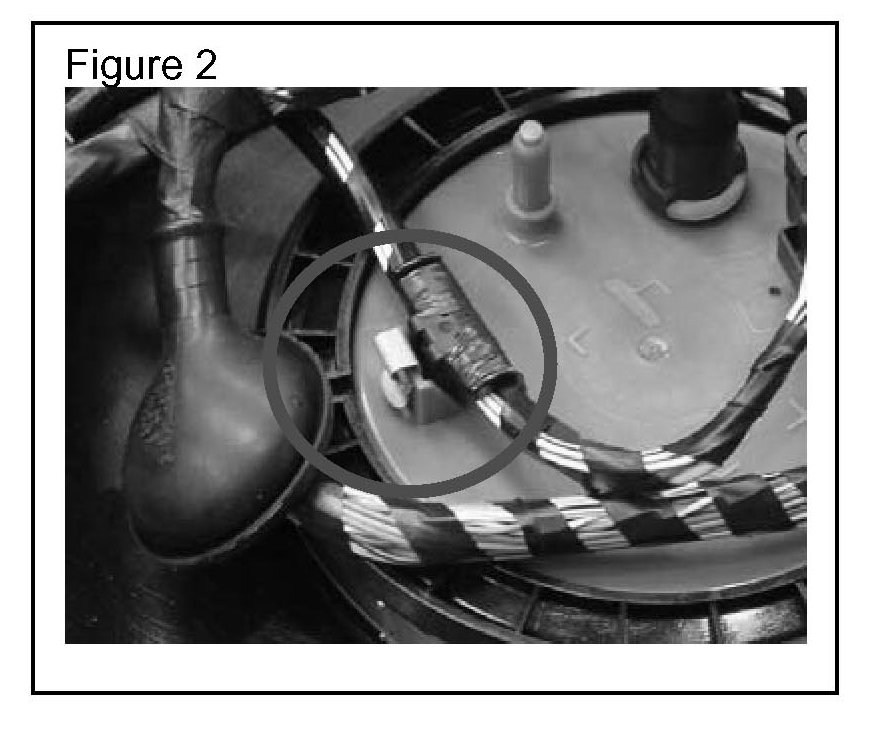 4. Remove the fuel tank harness retaining clip from the fuel pump flange. Save the clip for re-assembly (Figure 2)