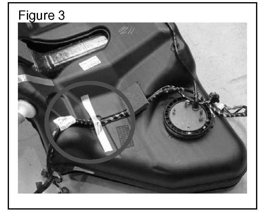 5. Remove and discard the tape securing the fuel tank harness to the fuel tank. (Figure 3)