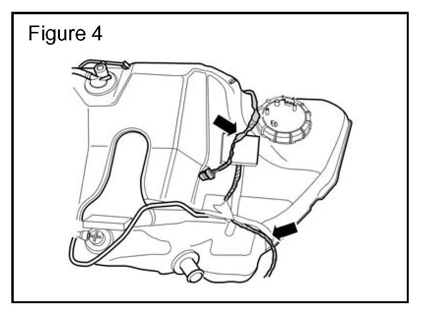 9. Install and align the fuel tank harness to the new fuel tank. (Figure 4)