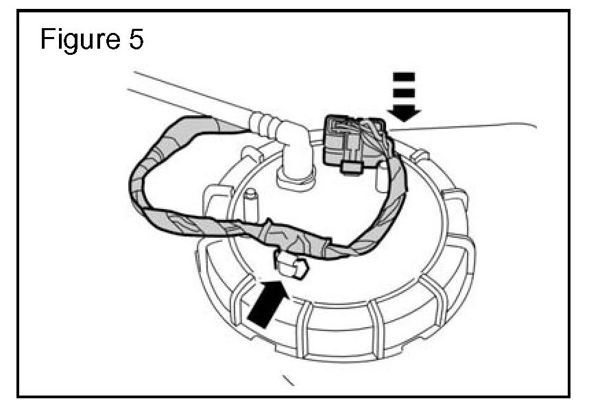 12. Connect the fuel tank harness electrical connector to the fuel pump. (Figure 5)
