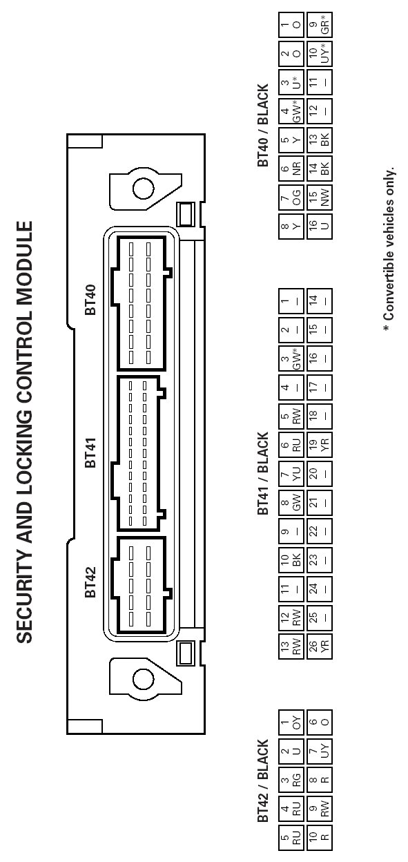 Security and Locking Control Module Pin Identification
