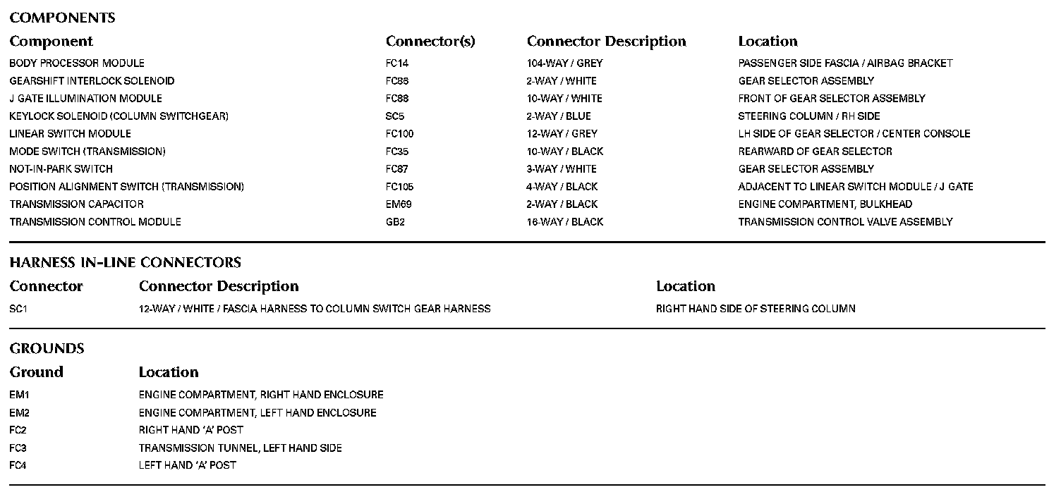 Locations: The location views for Ground Points, In-Line Harness Connectors, Harnesses, and Control Modules depicted within these diagrams can be found at Vehicle/Locations. Locations