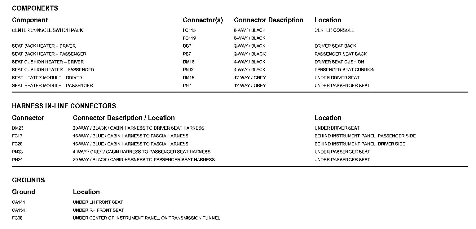 Locations: The location views for Ground Points, In-Line Harness Connectors, Harnesses, and Control Modules depicted within these diagrams can be found at Vehicle/Locations. Locations
