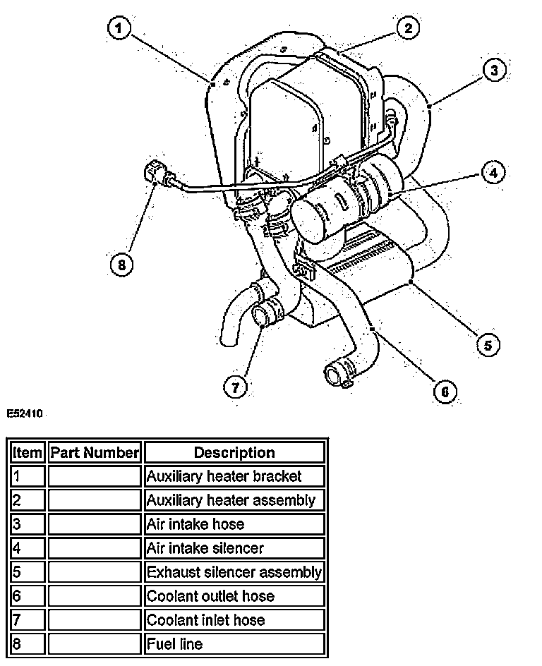 The auxiliary heater is located behind the left hand side of the front bumper and is accessed via the radiator splash shield.
