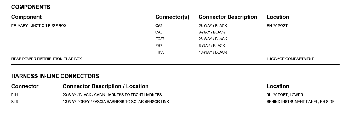 Locations: The location views for Ground Points, In-Line Harness Connectors, Harnesses, and Control Modules depicted within these diagrams can be found at Vehicle/Locations. Locations