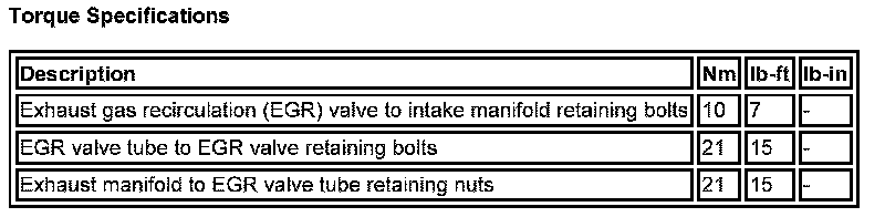 Torque Specifications: