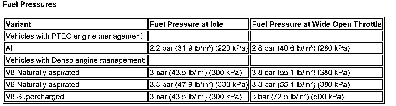 Fuel Pressures: