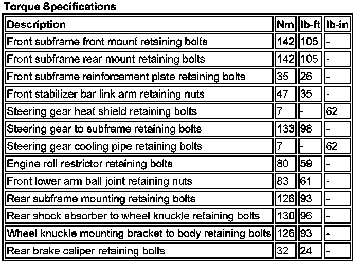 Subframe: Specifications