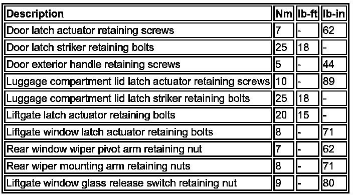 Torque Specifications: