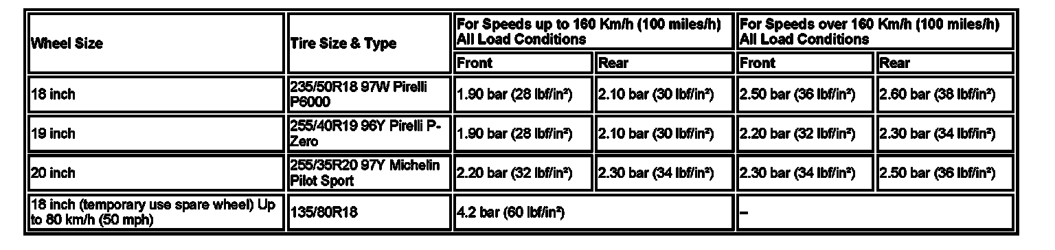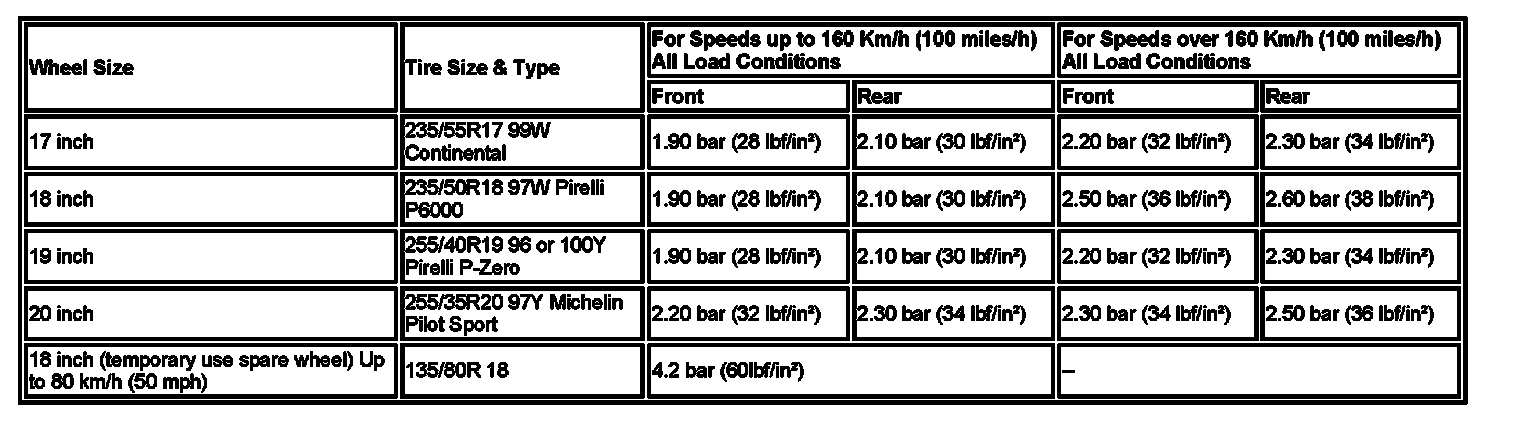 US/Canada Tire Pressures