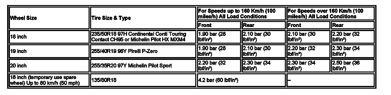 Out-Side North America (OSNA) Tire Pressures