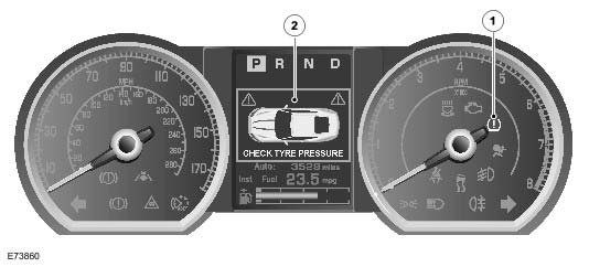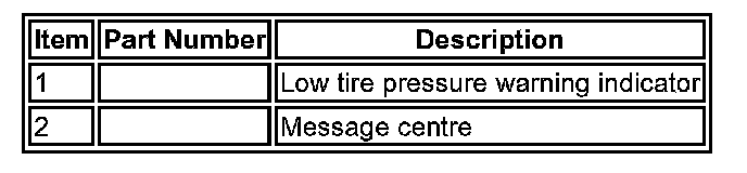 The warning indications to the driver are common on all vehicles fitted with TPMS. The driver is alerted to system warnings by a low tire pressure warning indicator in the instrument cluster and an applicable text message in the message centre.