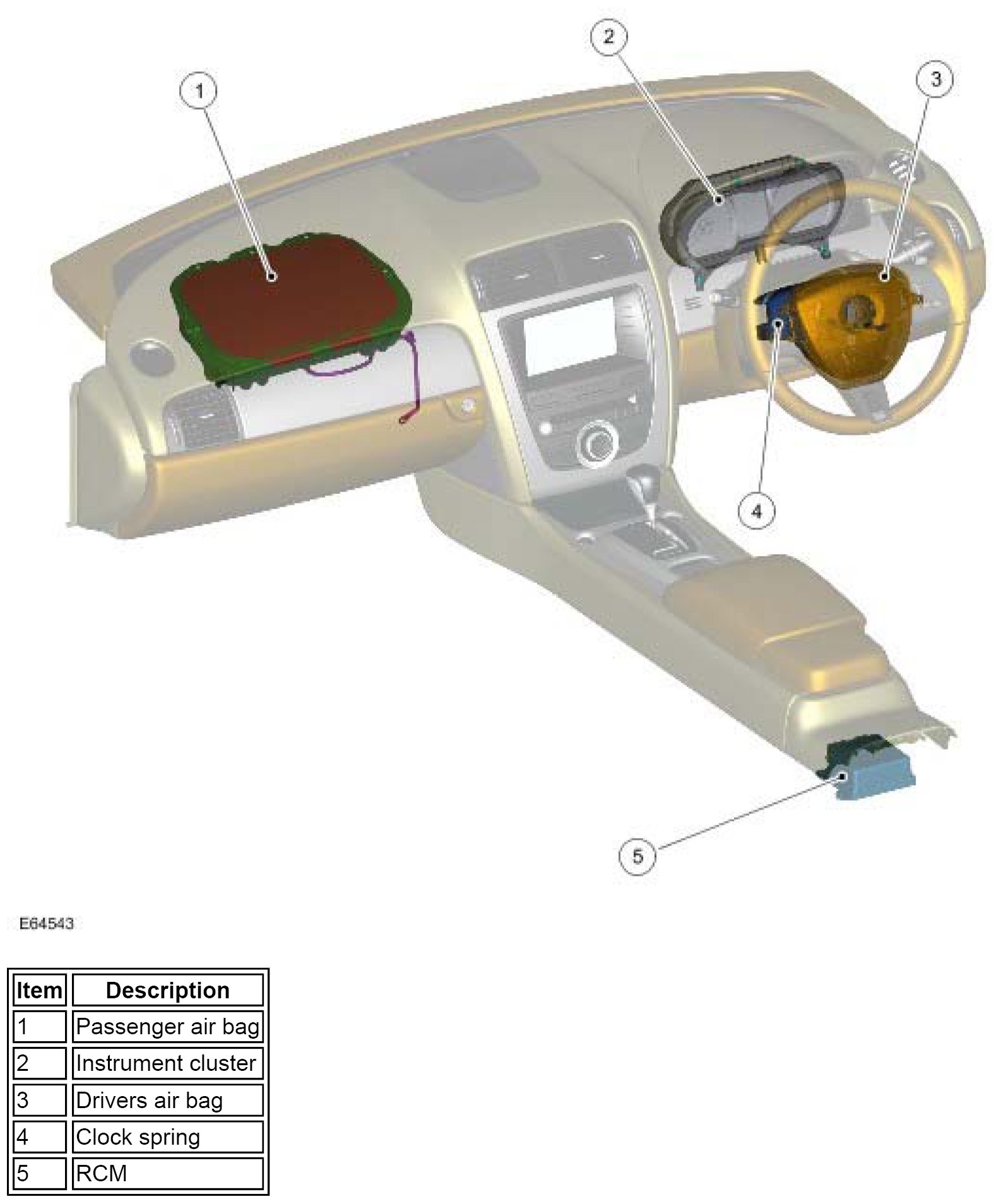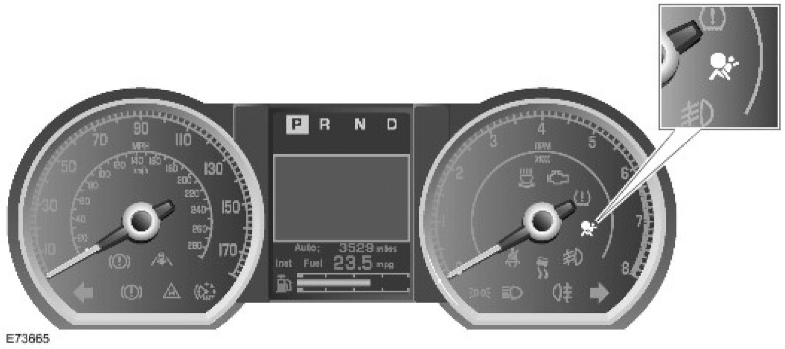 Operation of the air bag warning indicator is controlled by a high speed CAN bus message from the RCM to the instrument cluster. The RCM illuminates the air bag warning indicator if a fault is detected, and for approximately 6 seconds during the indicator check at the beginning of each ignition cycle.