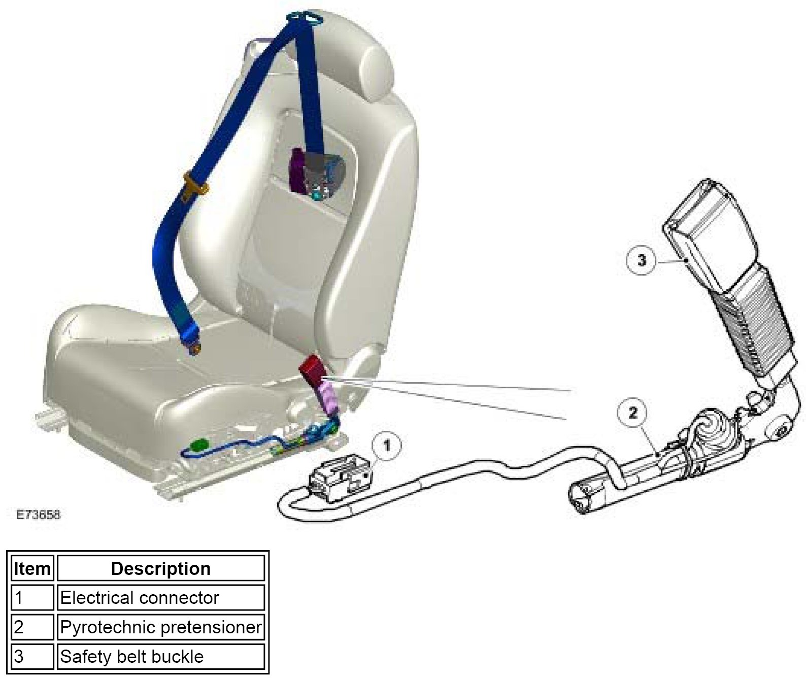 The seat belt pretensioners are fired when either the pretensioner impact limit or the roll-over limit is exceeded. The RCM (restraints control module) only fires the pretensioners if the related safety belt is fastened. For the front passenger pretensioner to fire, the seat must also be occupied by a person.