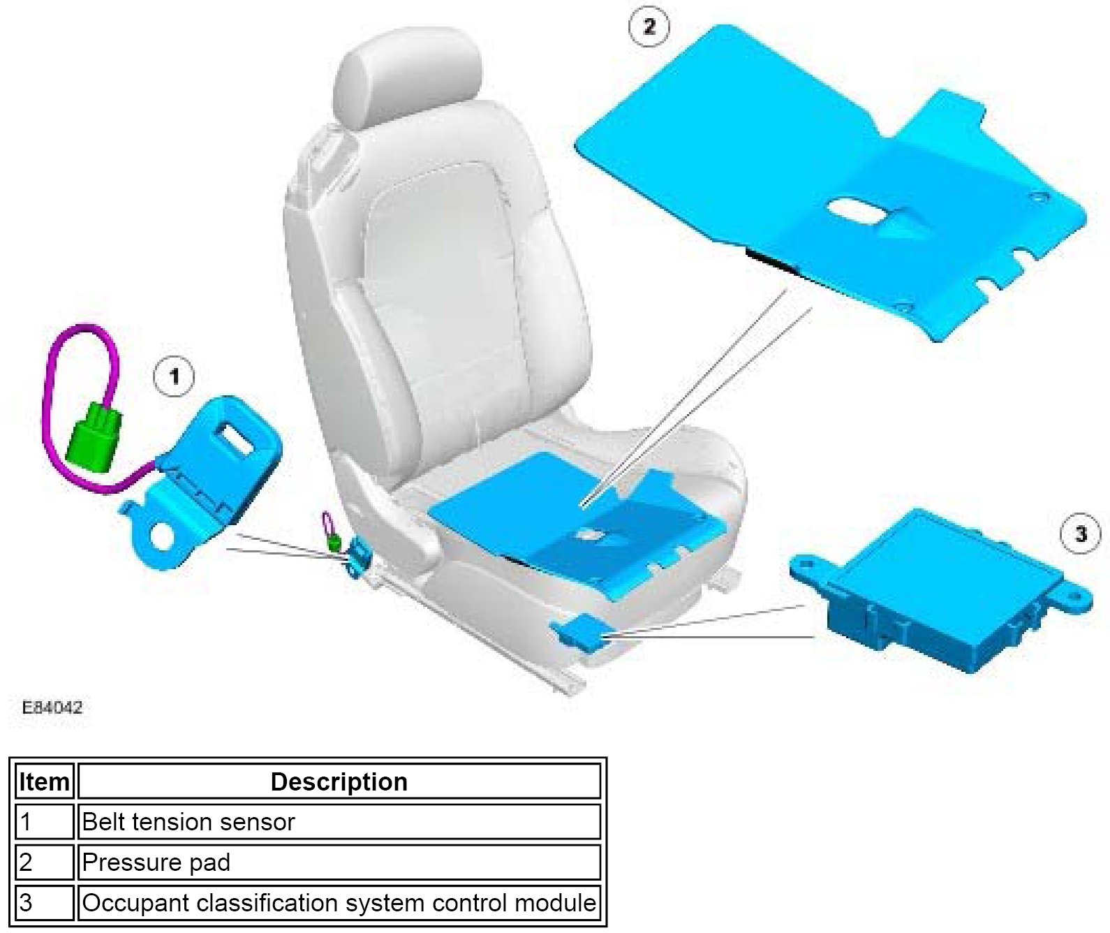 - A pressure pad, installed under the cushion of the front passenger seat, which is connected to a pressure sensor