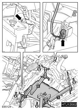 5. CAUTION: To align the sub-frame, install the special bolts in place of the front fixings. Tighten the rear fixings to set the position, remove the special bolts.