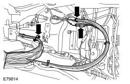 - Release the 2 fluid line and harness clips.