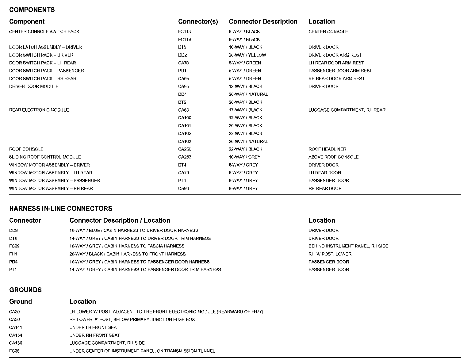 Locations: The location views for Ground Points, In-Line Harness Connectors, Harnesses, and Control Modules depicted within these diagrams can be found at Vehicle/Locations. Locations