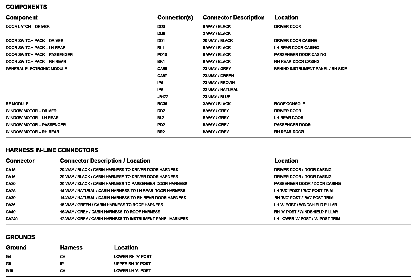 Locations: The location views for Ground Points, In-Line Harness Connectors, Harnesses, and Control Modules depicted within these diagrams can be found at Vehicle/Locations. Locations