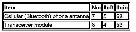Torque Specifications:
