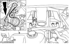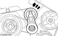 ^ Use a 3/8 inch square drive bar to rotate the drive belt tensioner.