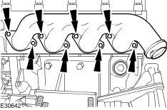 39. Remove and discard the supercharger outlet pipe retaining bolt seals.