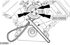 ^ Using the special tool, retain the water pump pulley.