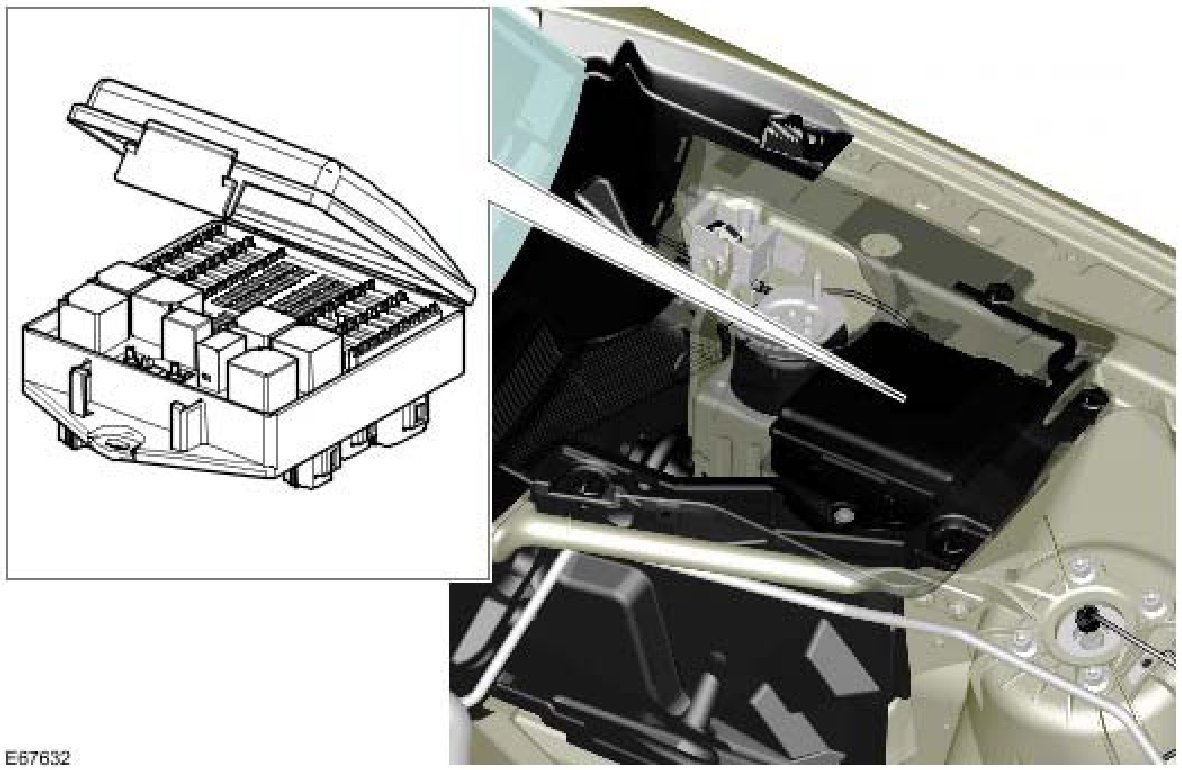 The power distribution box is located in the LH rear of the engine compartment, beneath a closing panel. The power distribution box is supplied electrical power from the BJB, via the CJB. For more information on the circuits and systems served by the power distribution box, refer to the Electrical Guide.