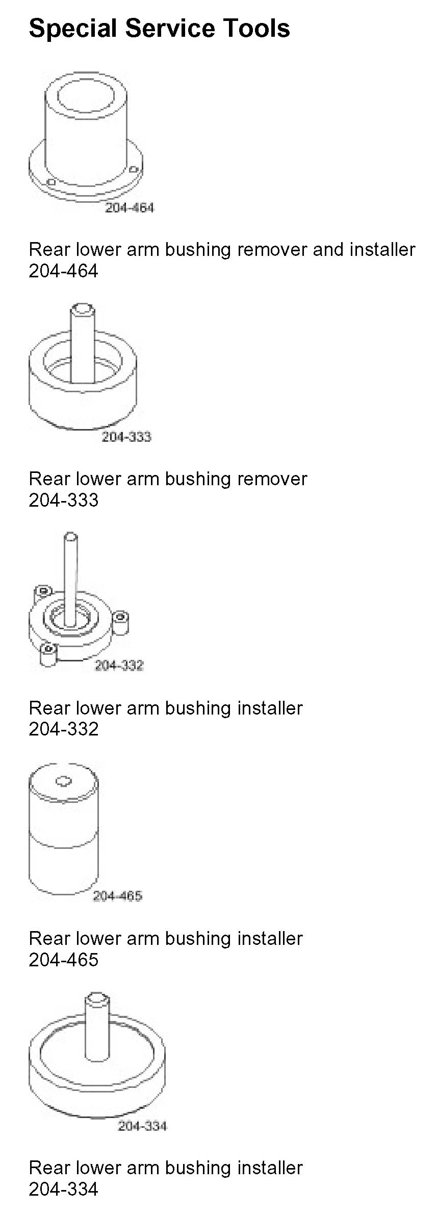 Rear Lower Arm BushingSpecial Service Tools