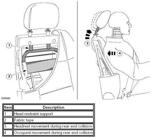 Both front seats are fitted with mechanical active head restraints that reduce injuries to the spinal column and possible whiplash in the event of a rear collision. The 2 supports of the head restraints inside the seat backrest are joined together with fabric tape. As the seat occupant's back and body weight presses against the fabric tape the head restraint moves upwards and forwards mechanically by means of a pivot point. The movement of the headrest cushions the occupant's head, altering the posture and reducing the relative motion between the body and the head. The head restraint then returns to it's original position using a spring return mechanism.