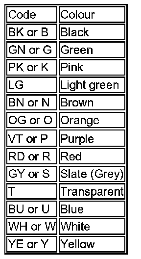 Wire Colour Codes