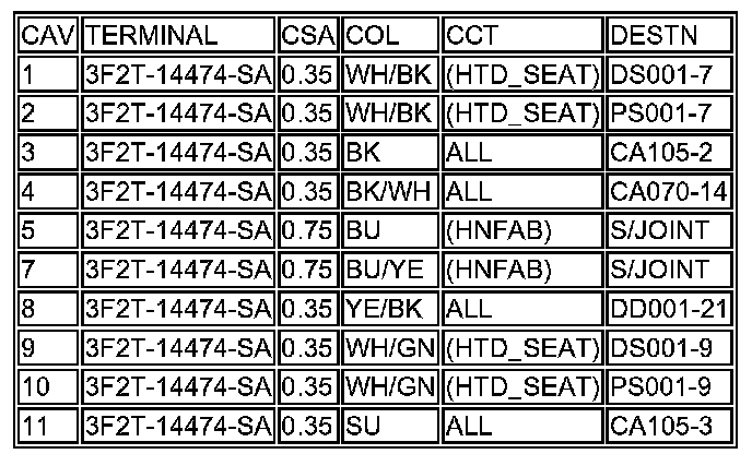 5. Cct: Identifies the model or option which uses the wire. 'ALL' means applicable to all models in the range fitted with the feature or system in question. In instances where different models, features or systems require different colour wires to be fitted in a cavity, each instance of the cavity is included in the pin-out table.